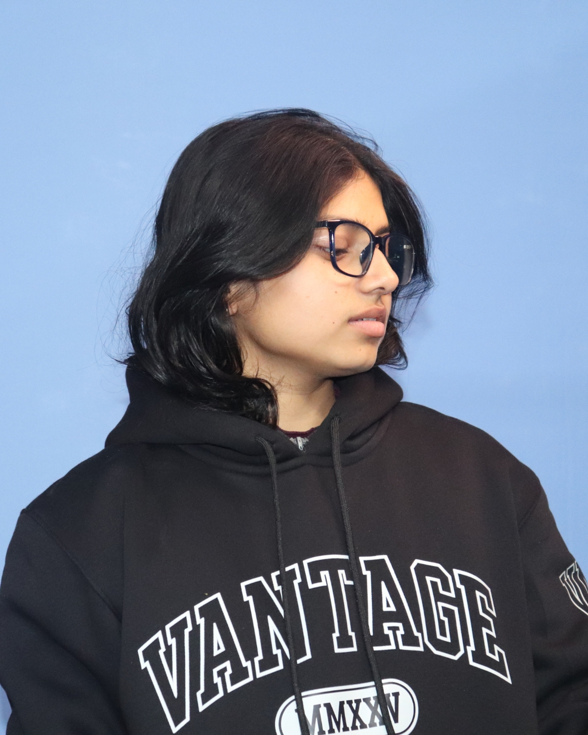 VANTAGE Loose Fit Printed Hoodie – Black